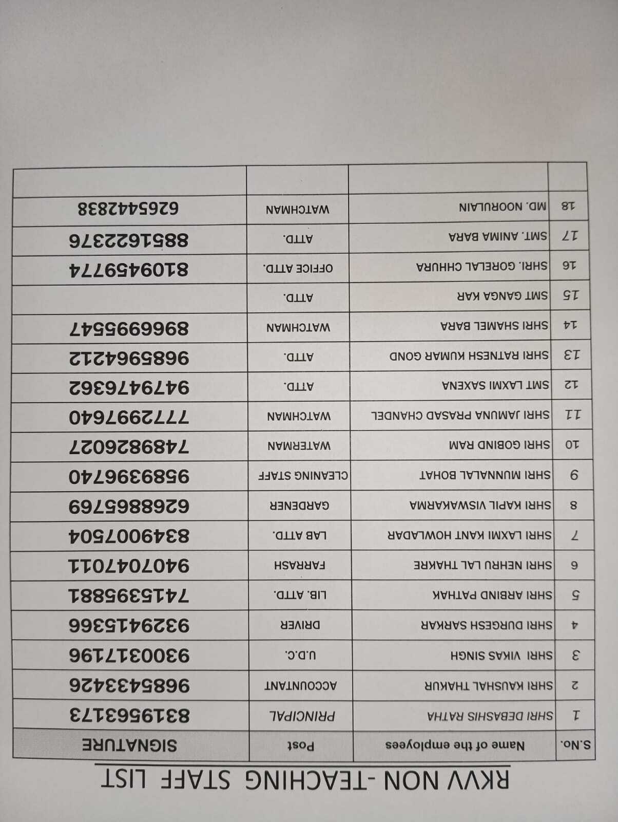 RKVV NON TEACHING STAFF LIST 2023-24 [ File Size 135 KB ]